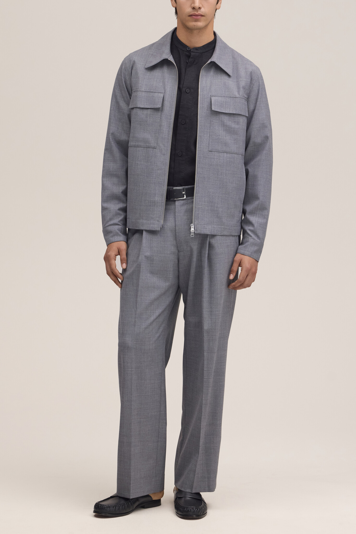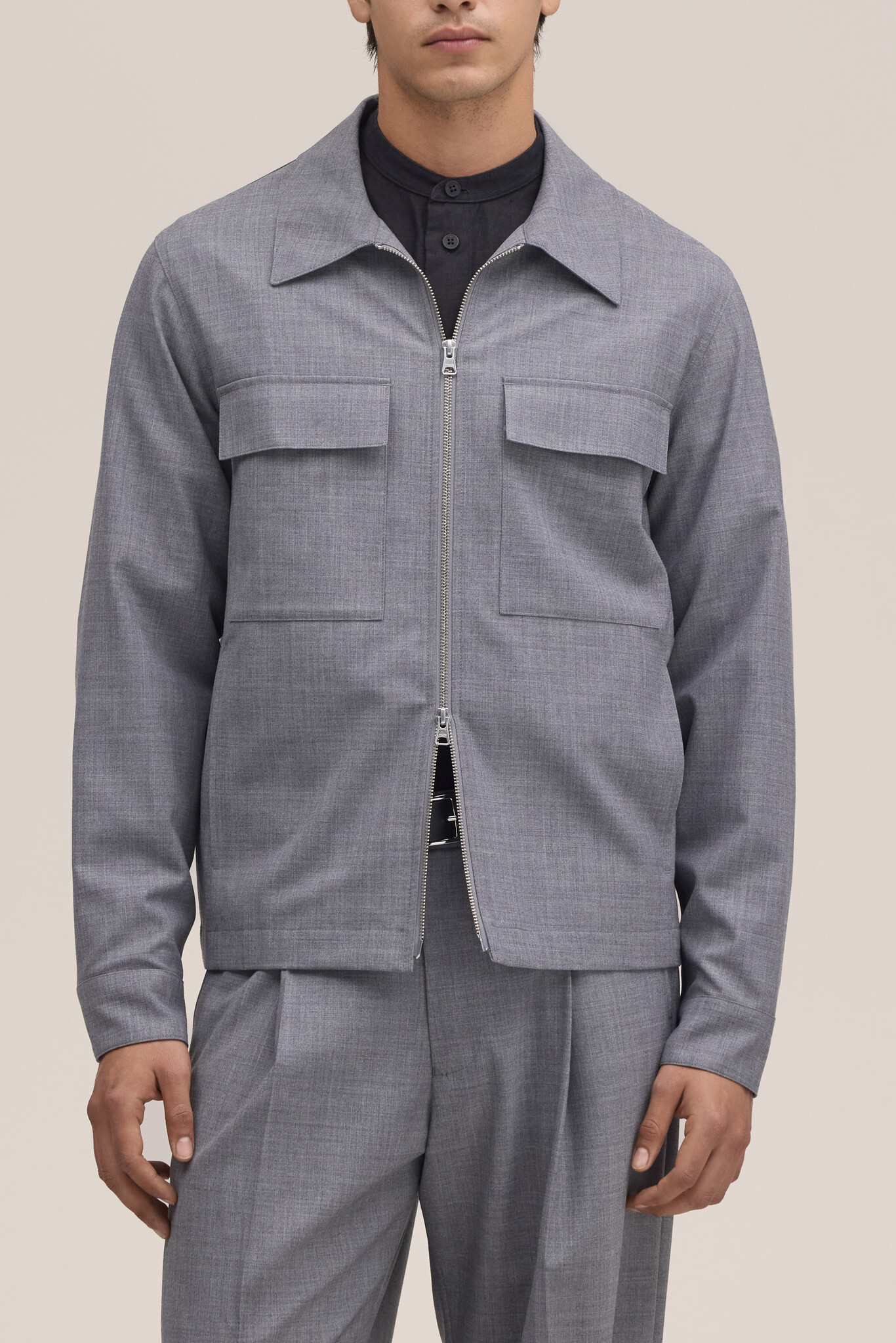 ProductomschrijvingZip jacket crafted in a soft, drapey washable wool blend. Designed with chest pockets, and a 2-way zipper.
