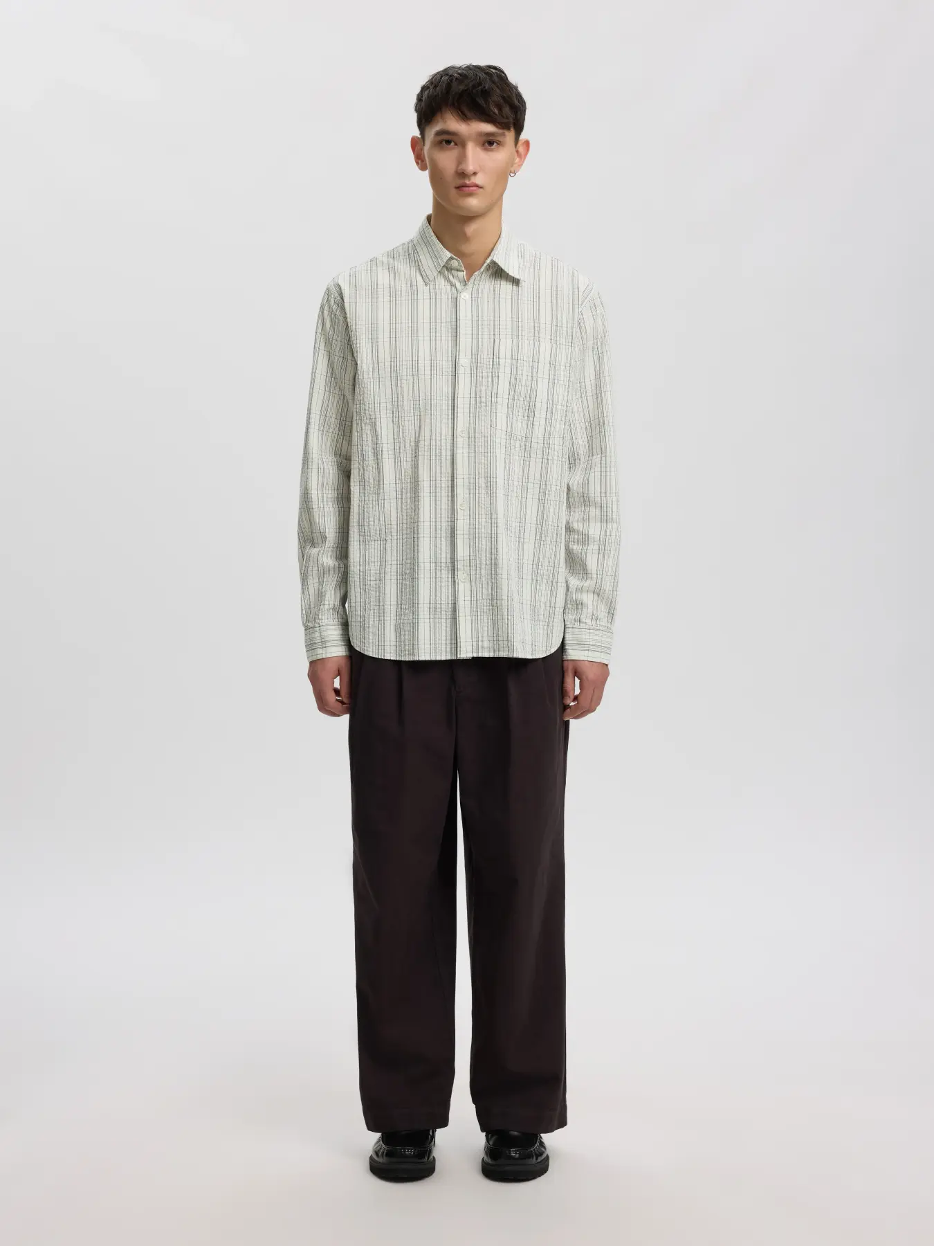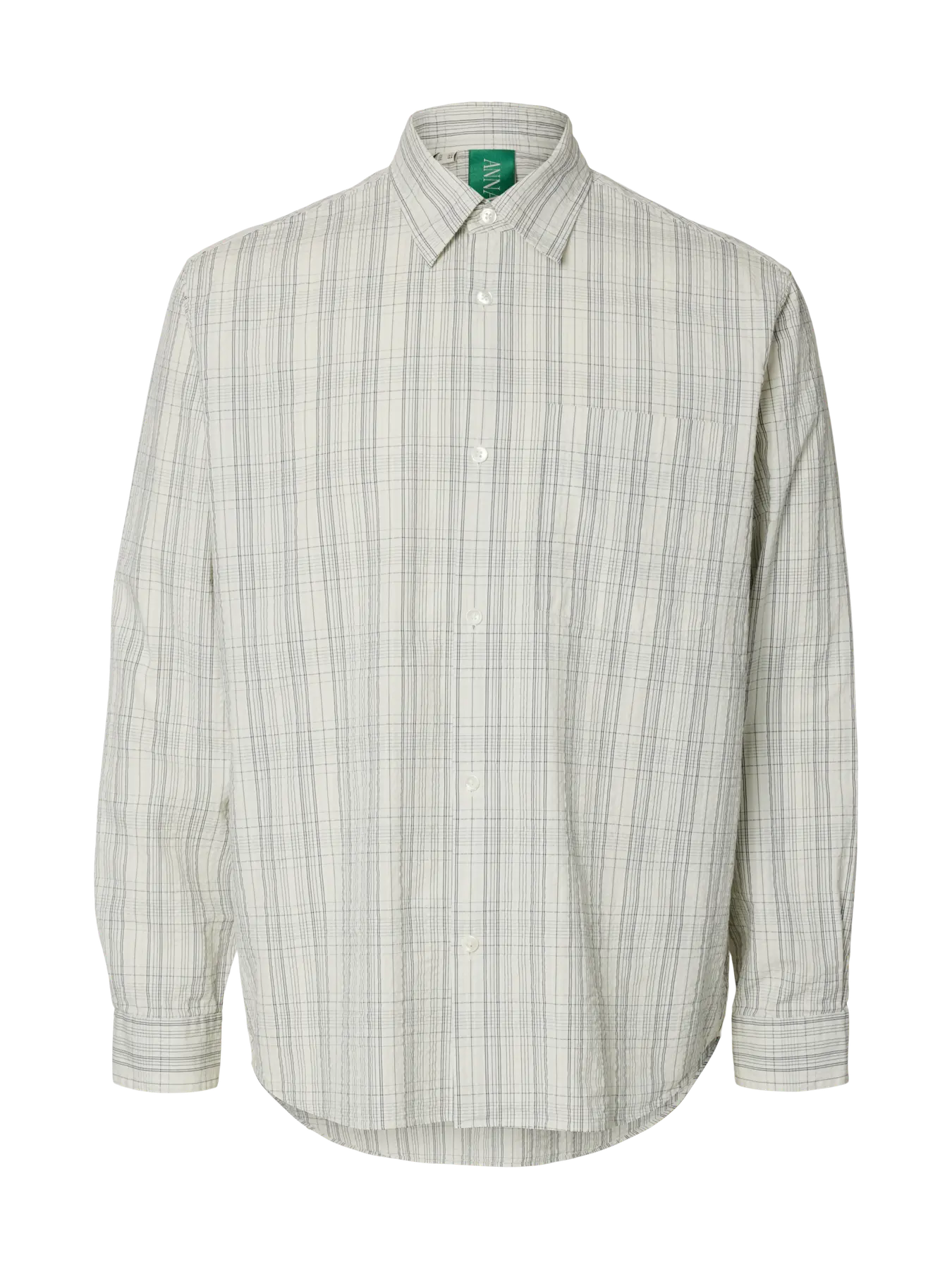 Anraslund Seersucker Mix Ls Shirt - Pewter White