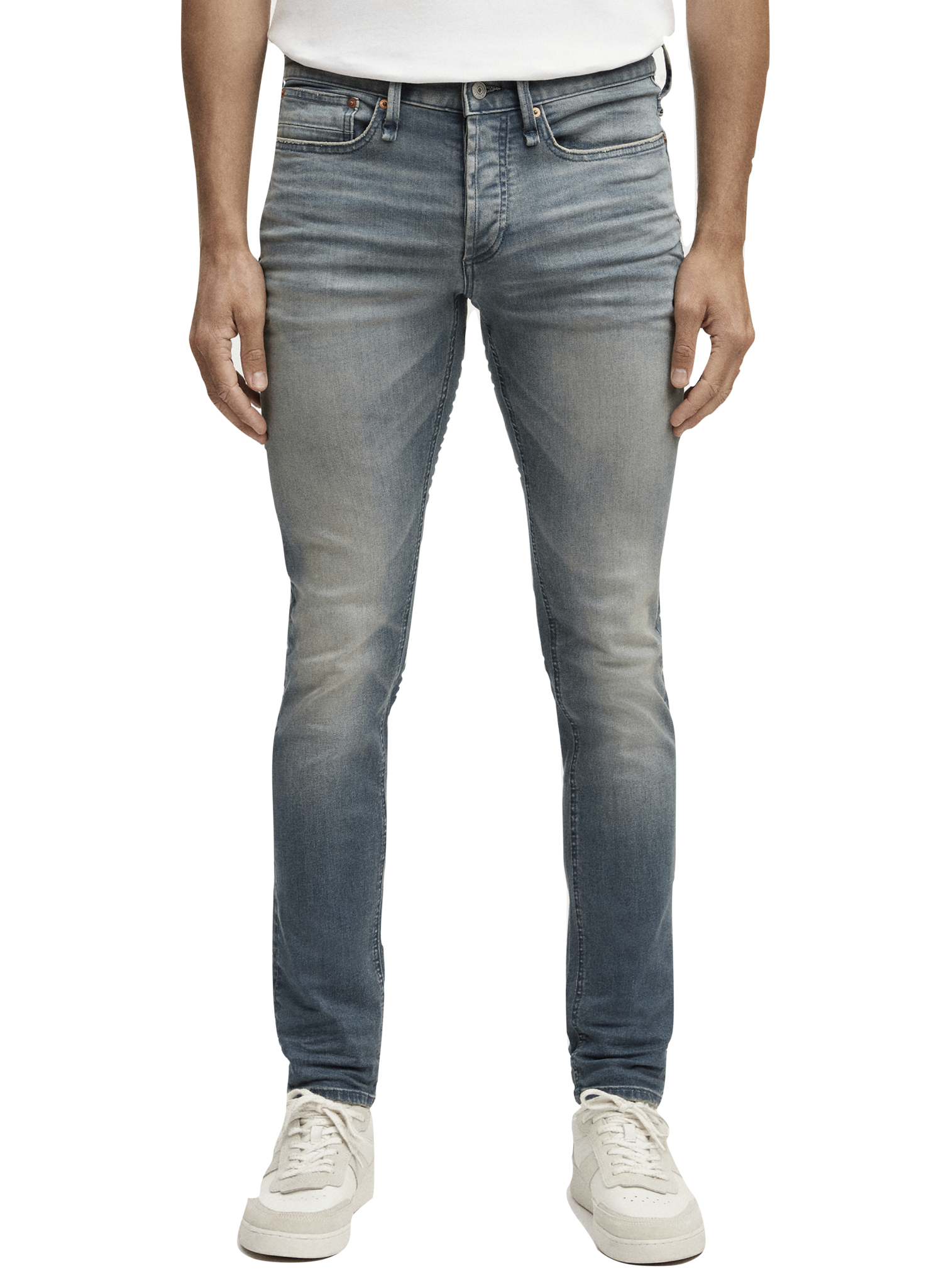 The BOLT is our contemporary skinny fit. This jean is cut from classic comfort stretch indigo denim, and is finished with a medium wash and special tinting to achieve a faded and worn-in look.