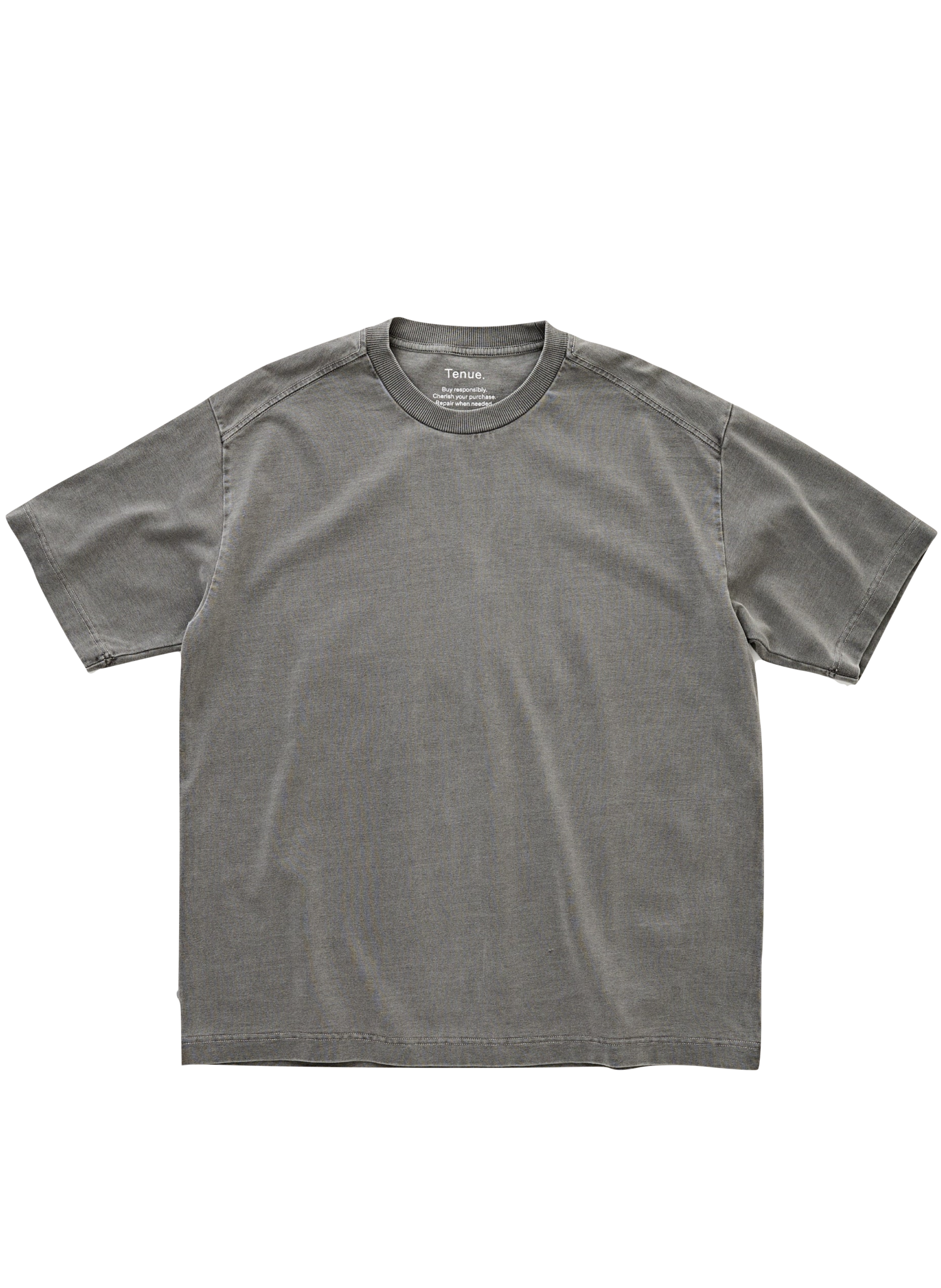 Our Tenue. Bruce Basalt is an oversized, heavy-weight T-shirt that is reminiscent of vintage American tees. A basic, yet meticulously produced essential. The T-shirts are made from a heavy 100% organic cotton fabric. The Bruce Basalt features a ribbed neckline with a printed neck logo. The neck logo saves a piece of fabric and ensures maximum comfort.