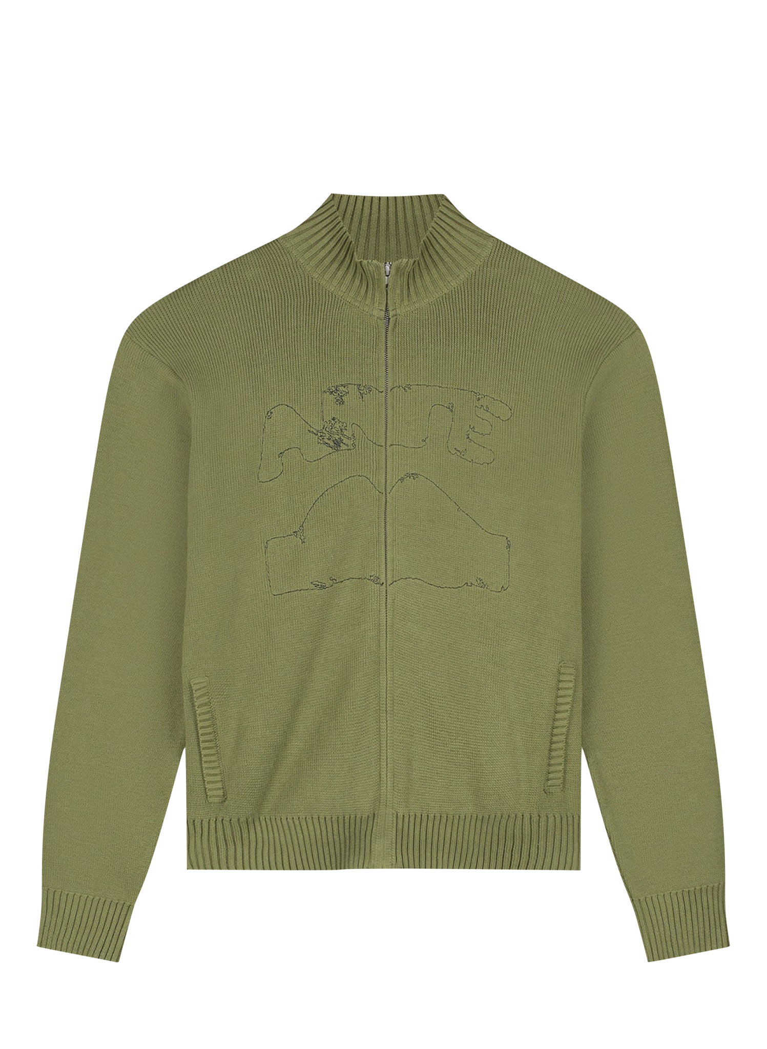Arte AntwerpArte Antwerp Diels Collar Cardigan - Green €220,00 Incl. btw Op voorraad M L XLMaat: *MLXLToevoegen aan winkelwagenDirect betalenGratis verzending Vanaf €100,-BeschrijvingCrafted from premium cotton, the cardigan in olive green features the contrours of a community favorite graphic stitched slightly distorted across the chest. The knit is finished with two side pockets, ribbed trimmings and a full-length zipper.