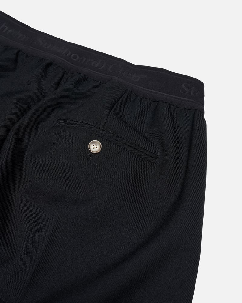 Stockholm Surfboard ClubStockholm Surfboard Club Elaine - Black €290,00 Incl. btw Op voorraad M L S XXLMaat: *MLSXXLToevoegen aan winkelwagenDirect betalenGratis verzending Vanaf €100,-BeschrijvingStockholm Surfboard Club loose fit trousers with elastic waistband, slant pockets and press folds. Unisex item Loose fit Full length Press folds Slanted pockets Back pocket with button closure Elastic logo waistband