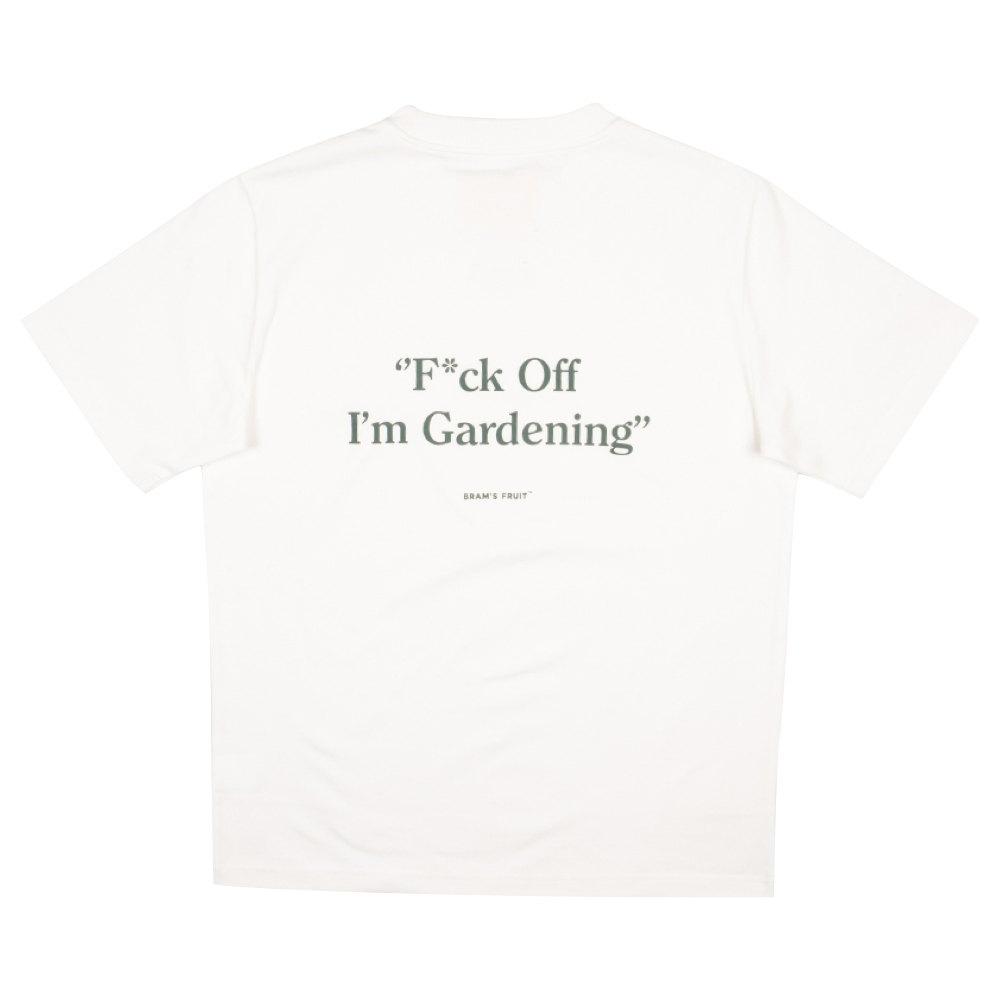 F*ck off I’m Gardening Tee – White €70,00 Incl. btw Niet op voorraad S M L XLMaat: *SMLXLNiet op voorraadGratis verzending Vanaf €100,-Beschrijving- A playful, screenprinted F*ck Off I’m Gardening script on the back. - Small Bram’s Fruit branding on the front. - Made with 100% cotton at 270 gsm, offering both comfort and durability for any gardening endeavor.