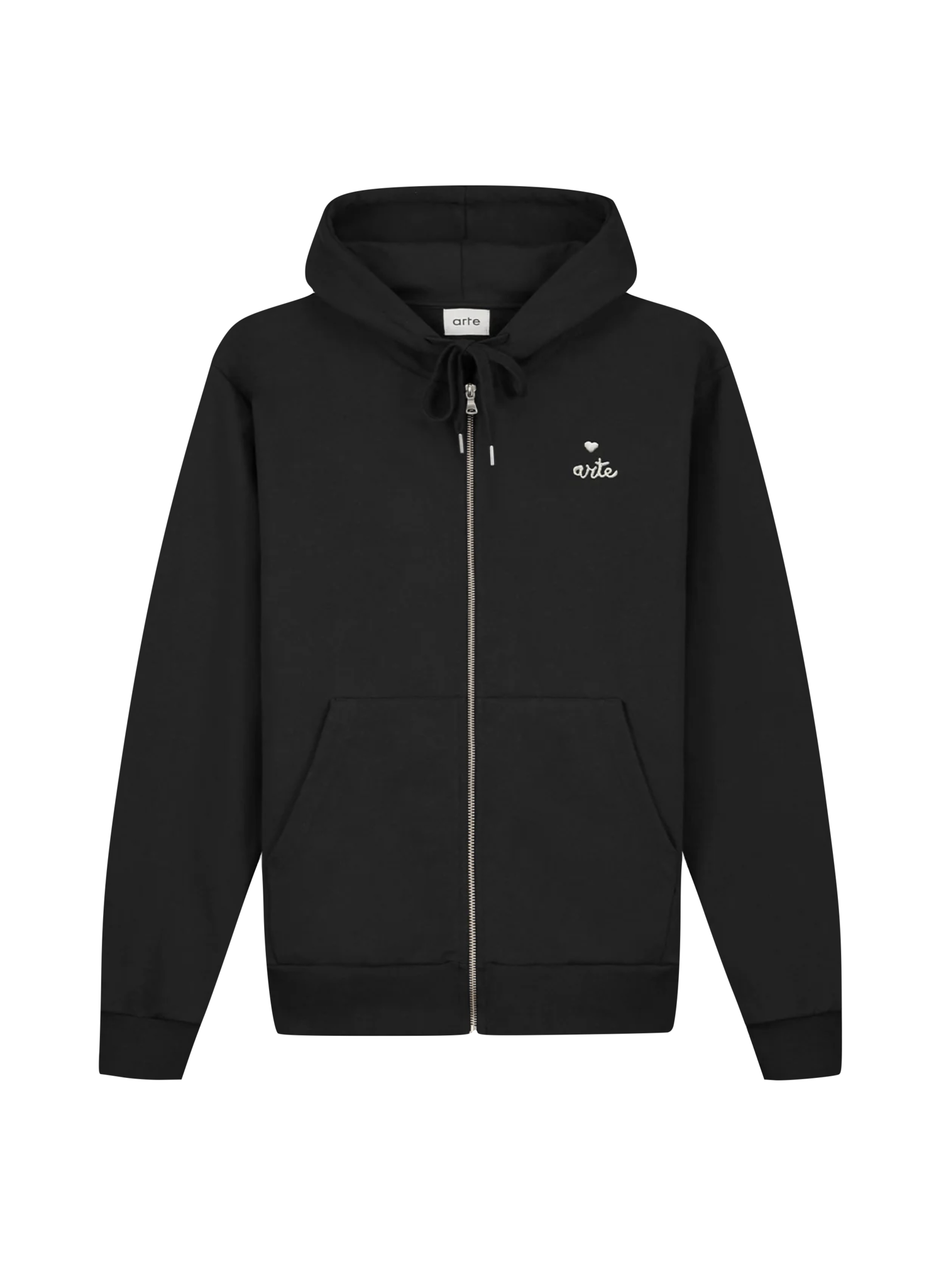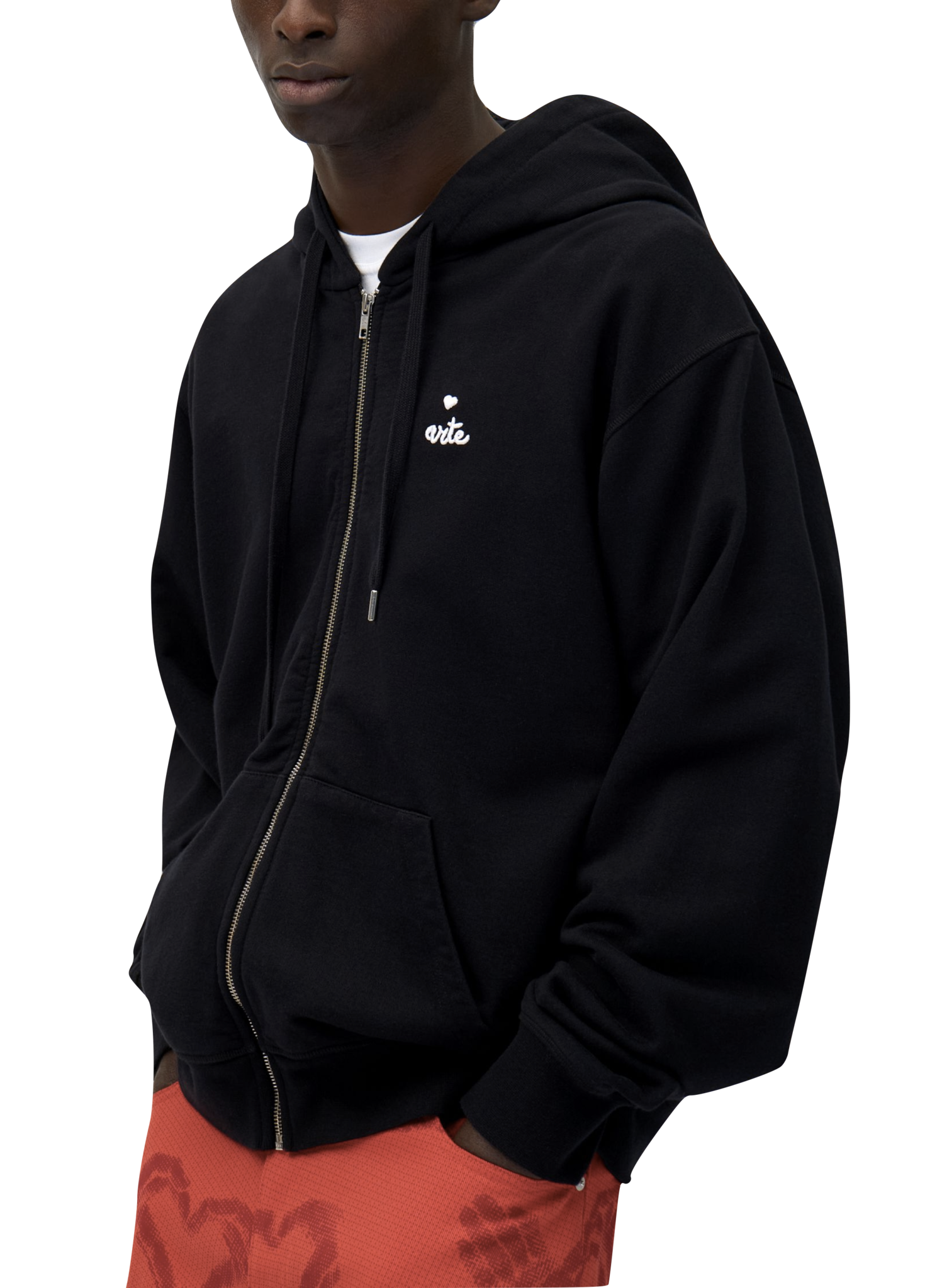 Made from premium heavyweight cotton, the zip hoodie features this season's take on the Arte signature heart logo embroidered in white on the left of the chest. The black hoodie has a relaxed fit and is finished with a full-length zipper, drawstring cords and two side pockets.