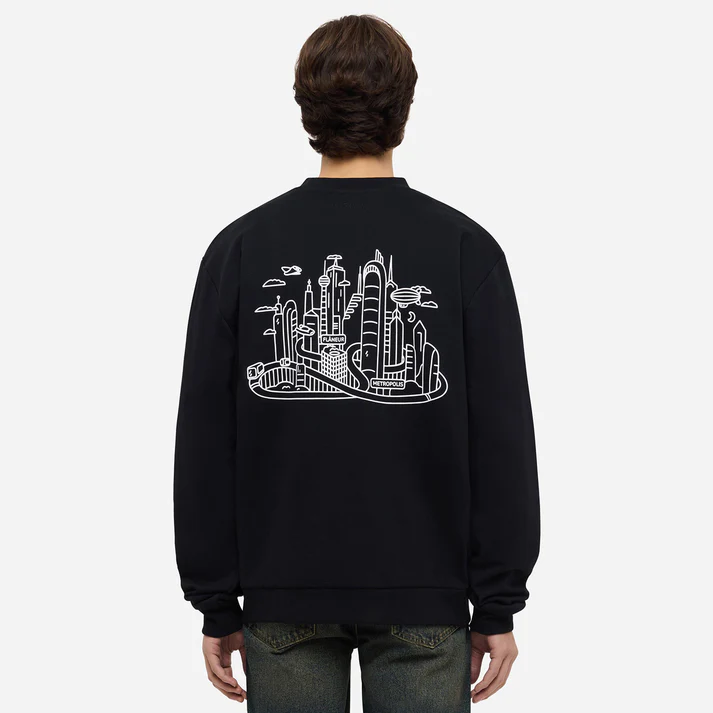 FlaneurFlaneur Metropolis Sweater - Black €165,00 Incl. btw Op voorraad S M LMaat: *SMLToevoegen aan winkelwagenDirect betalenGratis verzending Vanaf €100,-Beschrijvingsweater with metropolis line drawing print color: black size: model is 185 cm and wears size L