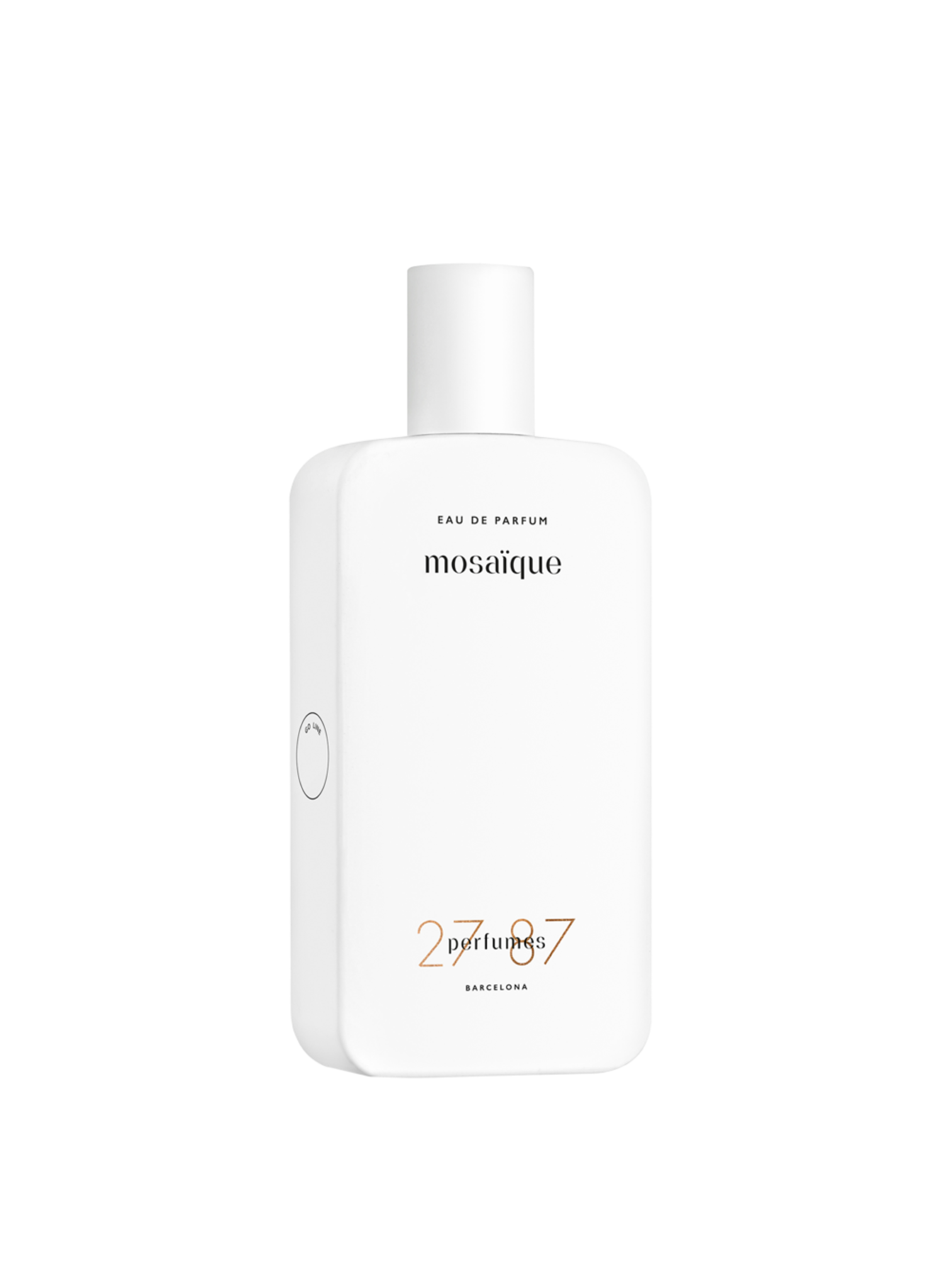 Mosaíque Eau de Parfum by 27 87 Perfumes is a perfume creation with a smoky accent, combined with the mystical sweetness of honey, plum and ylang-ylang. Interspersed with scents of roasted cocoa, leather and oakmoss, this perfume results in a complex and extraordinary experience for the senses. A perfume based on ancient traditions, produced entirely in Barcelona. 27 87 Perfumes invests in unique top-quality ingredients, making the perfume long-lasting and evolving over time into a unique and unforeseen olfactory sensation.