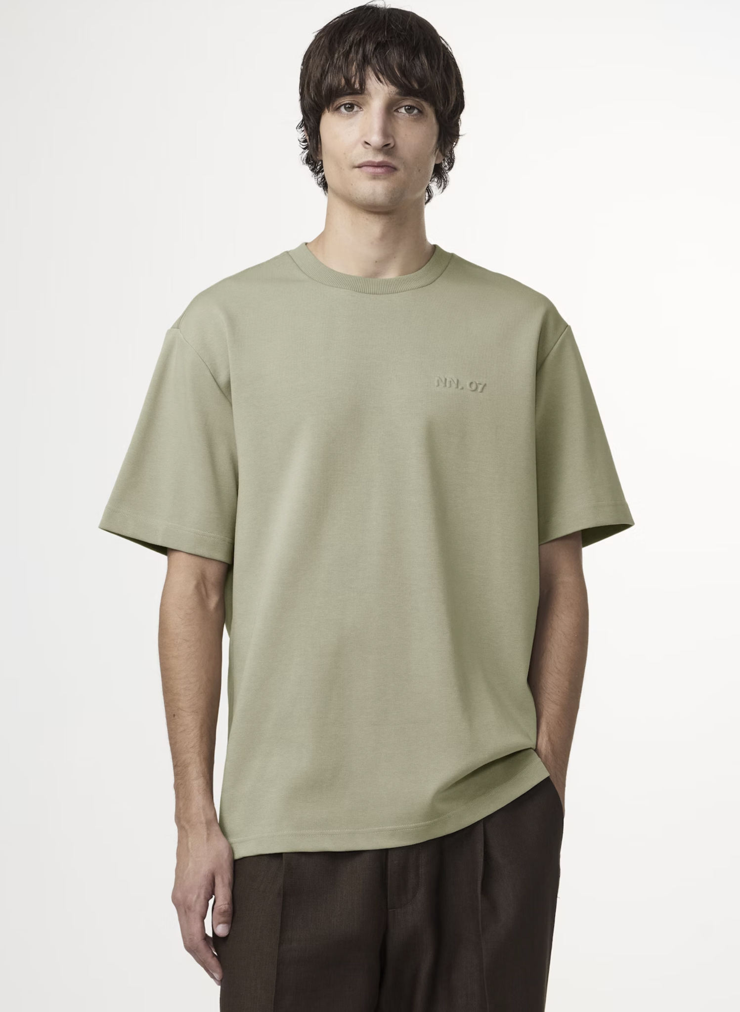 Sale-50%NN07NN07 Nat SS Logo Tee 3457 - Sage Green €50,00 €100,00Incl. btw-50% Niet op voorraad M XL L SMaat: *MXLLSNiet op voorraadGratis verzending Vanaf €100,-BeschrijvingRelaxed fit and heavyweight logo tee, knitted in a Ponte di Roma stitch from cotton and TENCEL™ Lyocell, with a touch of stretch, featuring an embossed NN.07 logo on the chest.