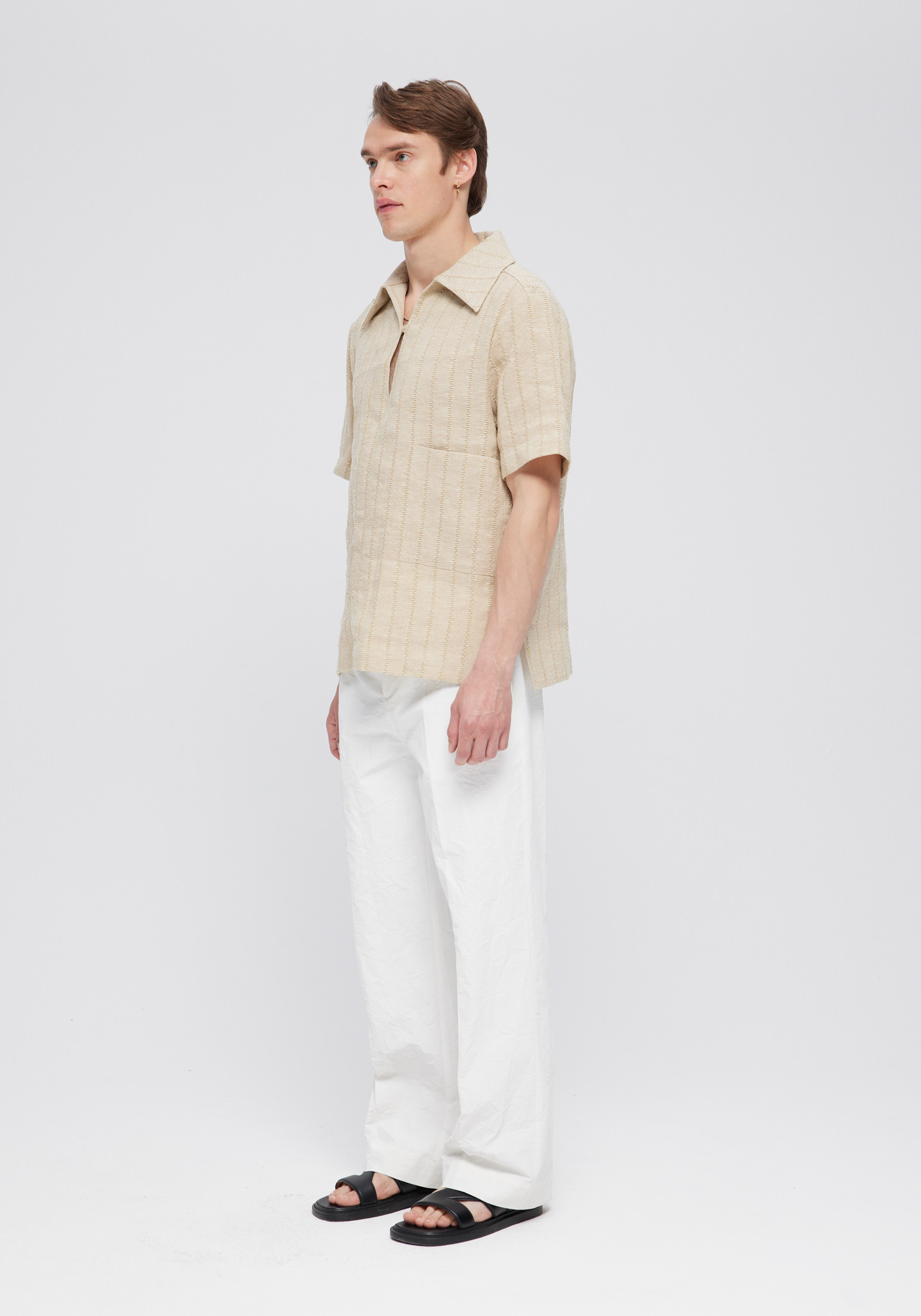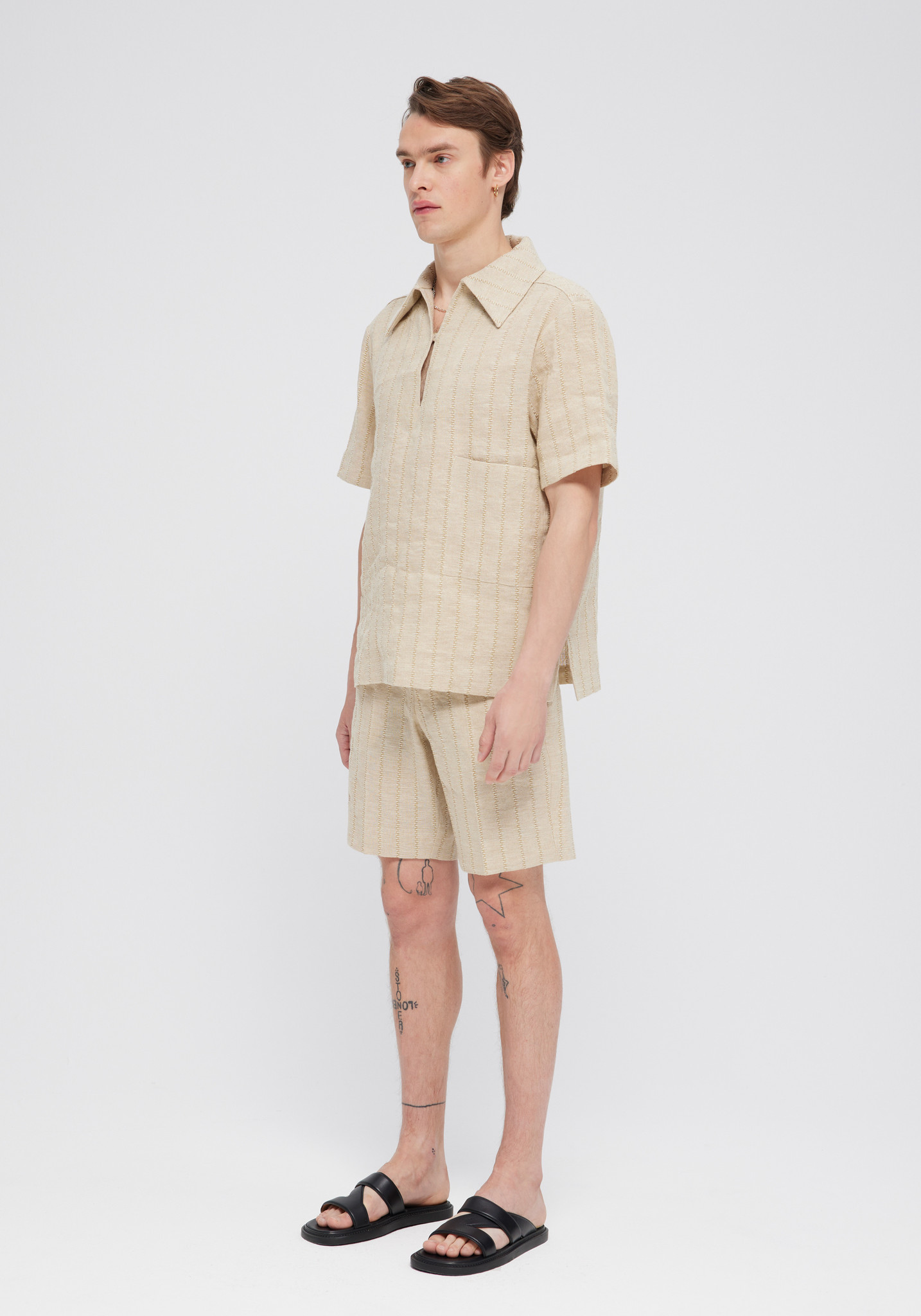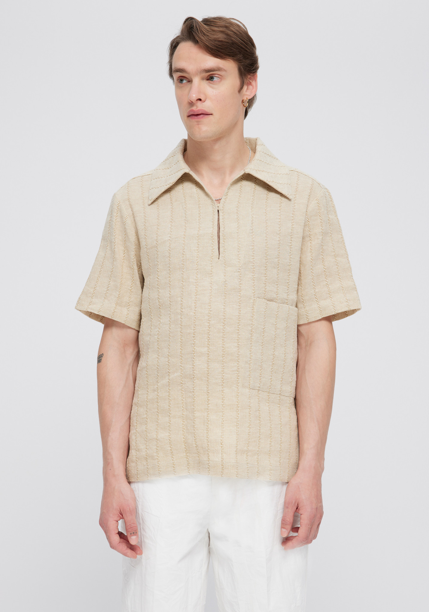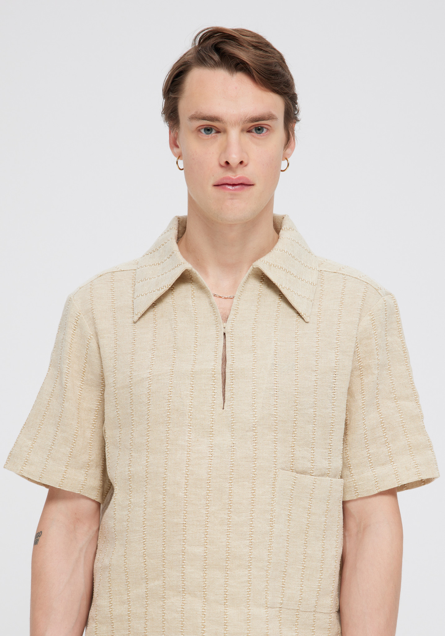 Resort Linen Kaftan - Straw €360,00 Incl. btw Niet op voorraad 48 50 52Maat: *485052Niet op voorraadGratis verzending Vanaf €100,-BeschrijvingShort sleeve kaftan in a special drop needle linen from the Italian mill Bartolinni. The model is wearing size 50 and is 188cm tall. The material is 63% linen 37% cotton. - Special drop needle linen blend fabric - Fabric from Italian mill Bartolinni
