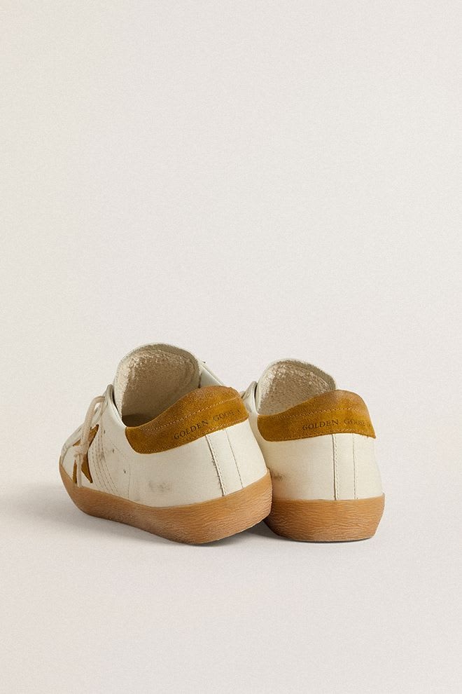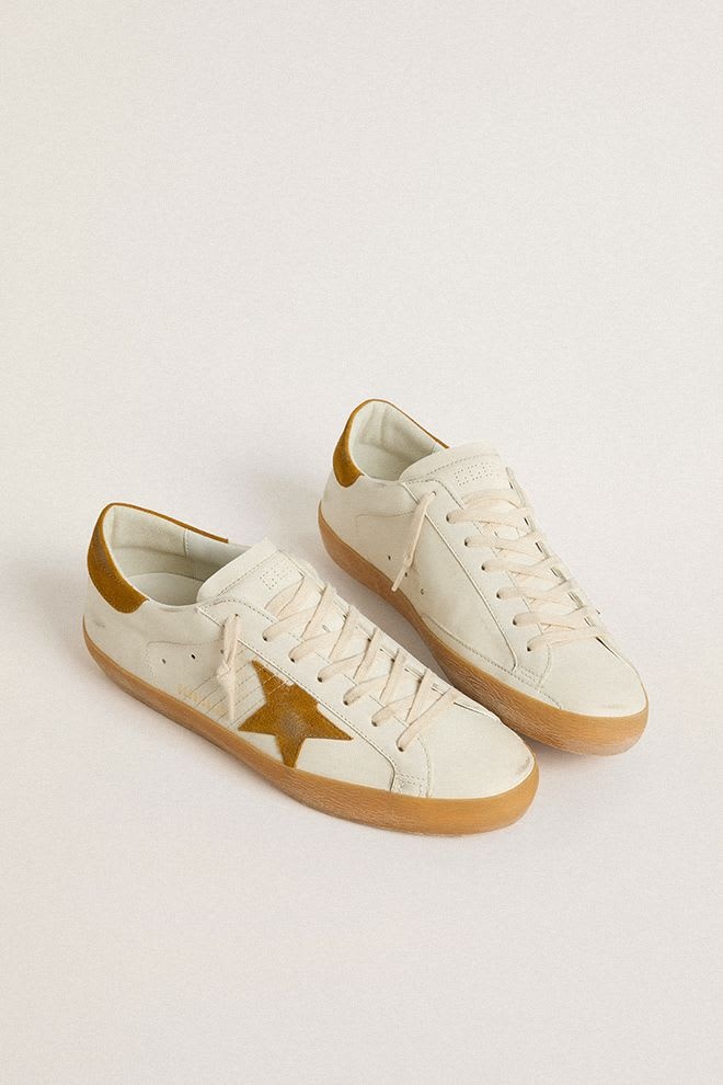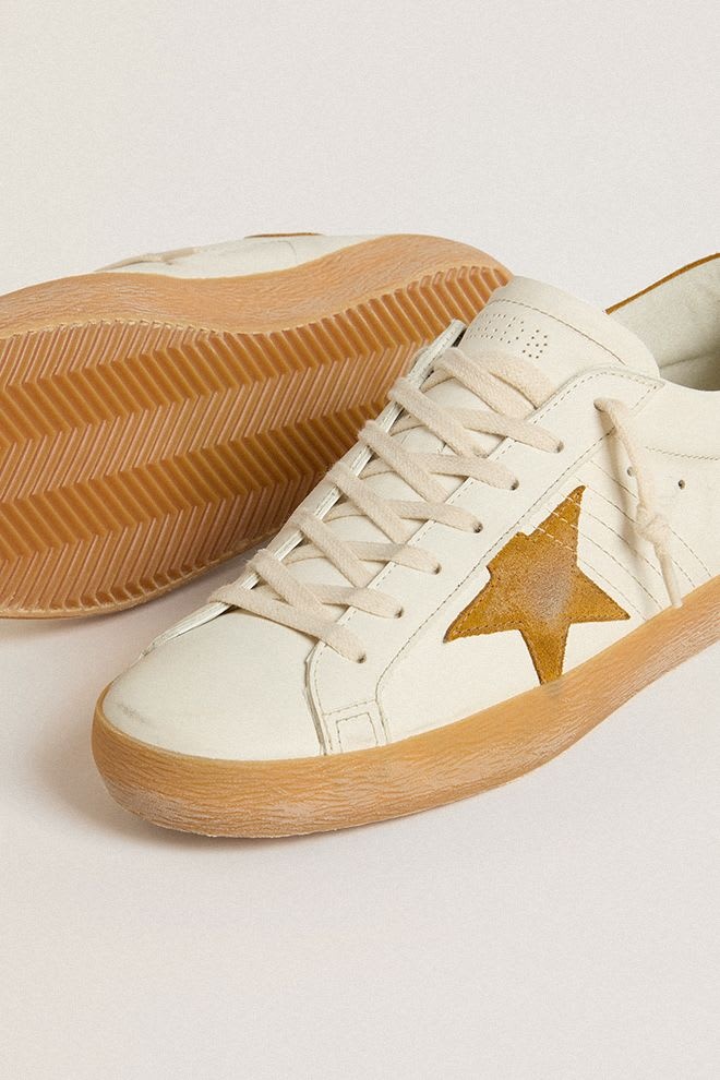 Golden GooseGolden Goose Super-Star - White/Ocra €485,00 Incl. btw Op voorraad 40 41 42 43 44 45Maat: *404142434445Toevoegen aan winkelwagenDirect betalenGratis verzending Vanaf €100,-BeschrijvingGolden Goose sneaker. The Golden Goose Super-Star combines a vintage-inspired design with unique patina effects and the iconic star on the side — features that define the signature style of the Italian brand.