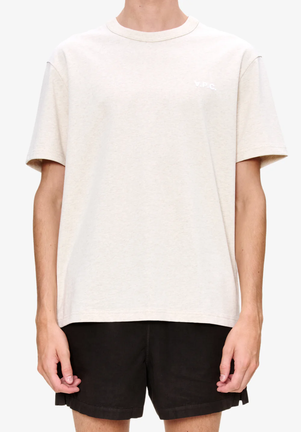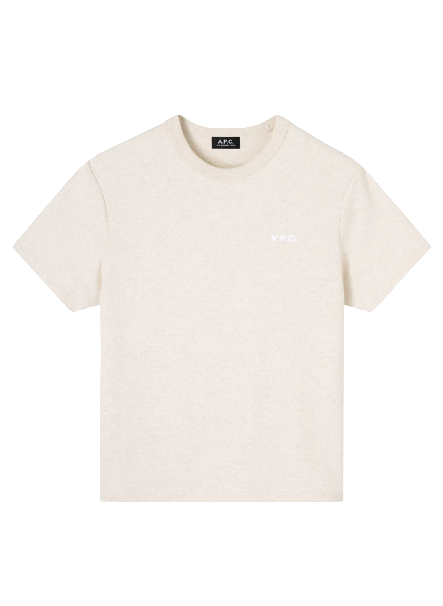 ProductomschrijvingCropped and boxy cut with a loose fit.Crew neck.Velvety ecru flocked V.P.C. logo over the heart.100% organic cotton.