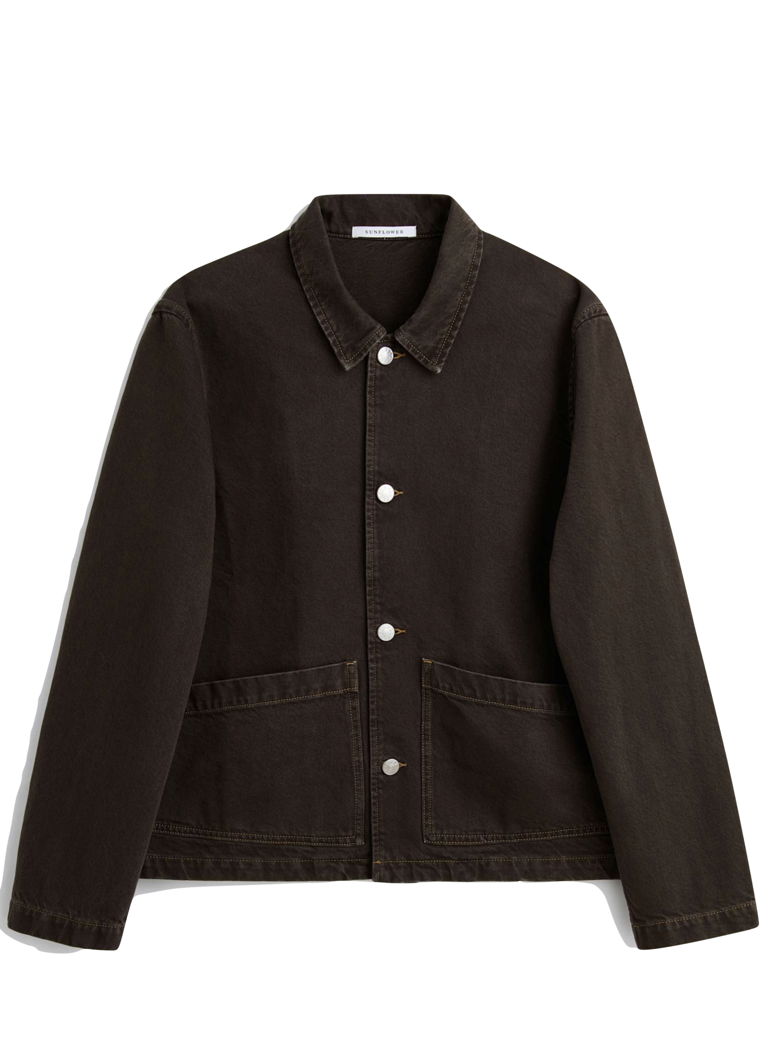 SunflowerSunflower Worker Jacket - Vintage Brown €340,00 Incl. btw Niet op voorraad L XL XXLMaat: *LXLXXLNiet op voorraadGratis verzending Vanaf €100,-BeschrijvingClassic work wear jacket with front pockets, garment is dyed to dark brown and then washed for the worn-in feel.